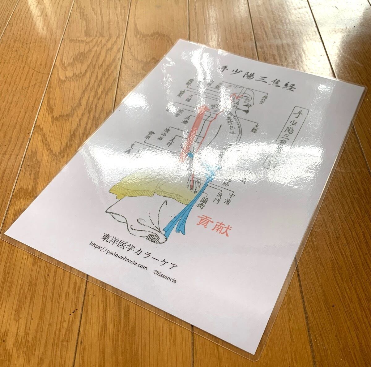 (グレーの四角形「エッセンシア」は、複製防止のためのもので実際のものには印刷されていません。写真は、内容は違っていますがシートの実物です)